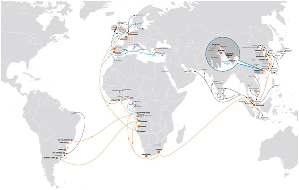 The global reach of Med Lloyd Line's route network and logistics service can be divided into following sectors. Please select on the route map for getting full and long term sailing schedule: